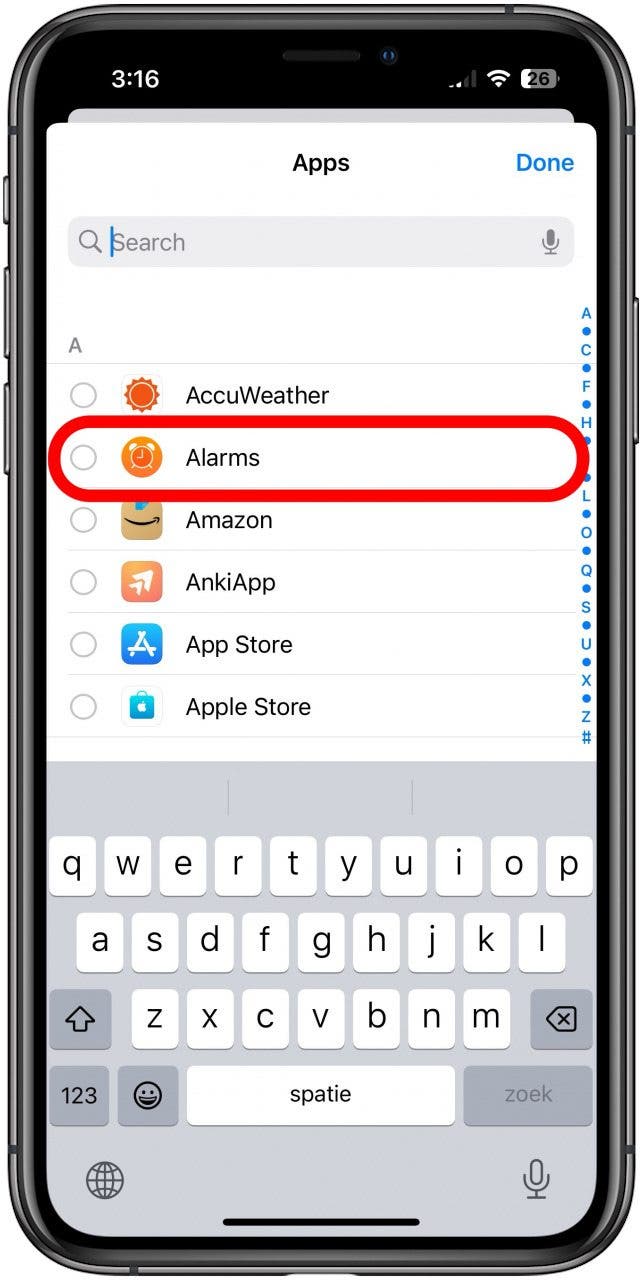 - 选择报警应用程序由您选择。请注意,您必须为该应用程序启用通知才能将其显示为选项。
