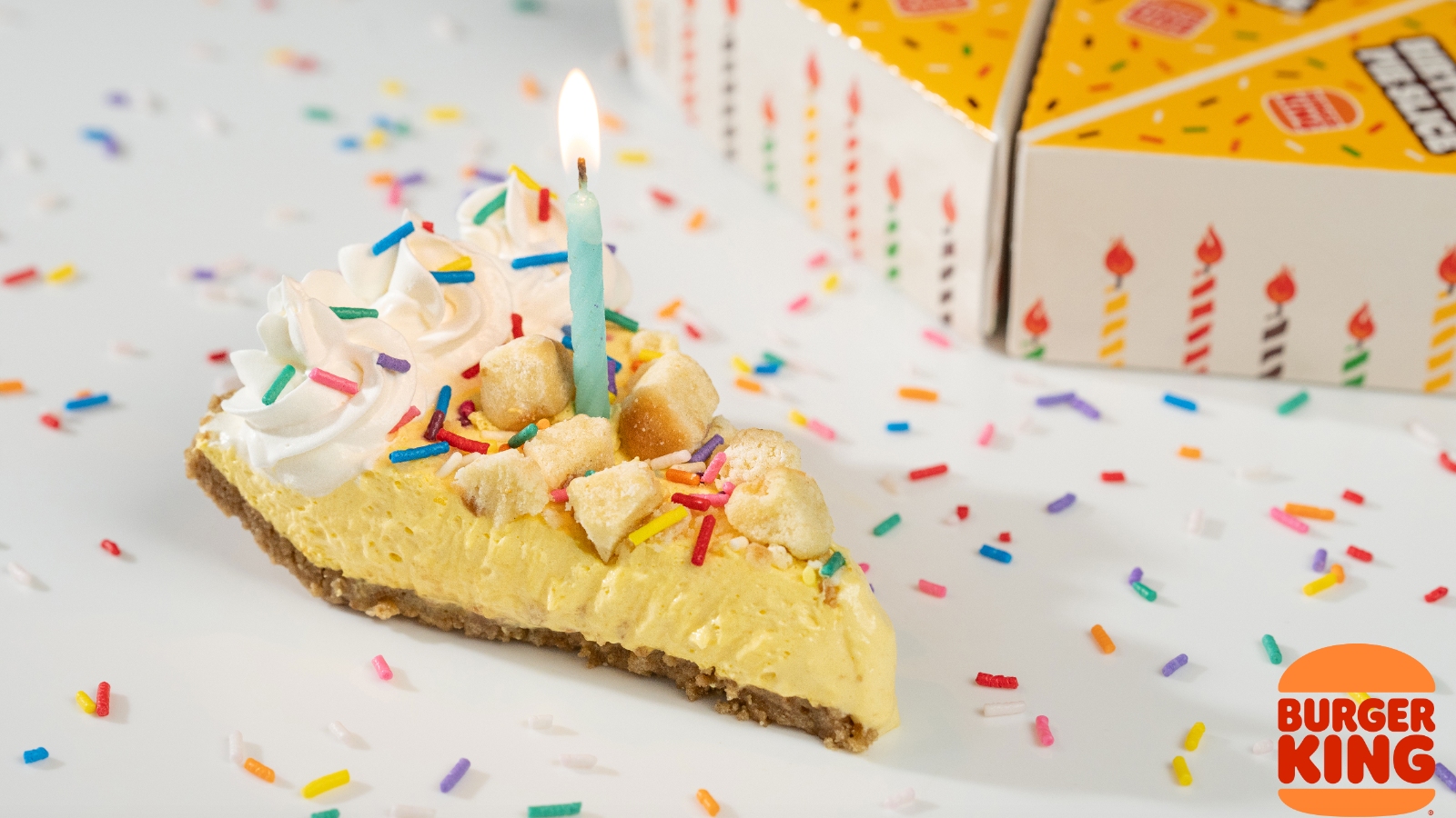 从 2024 年 5 月 13 日开始,汉堡王将推出一款名为“生日切片派”的新甜点。生日馅饼切片采用超级奶油生日蛋糕灵感的填充物,以及饼干屑底座,上面撒有大量彩虹糖粉,与主题保持一致。