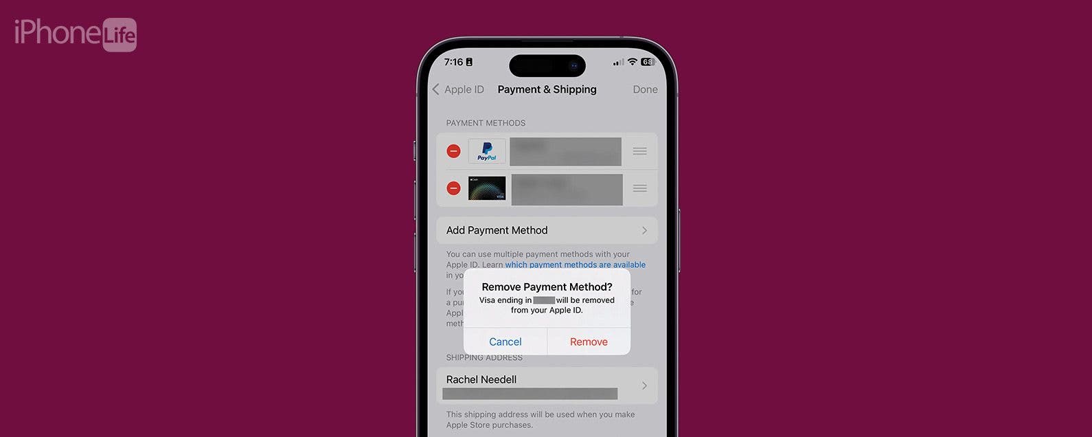 對於大多數人來說,這三個問題將解釋為什麼您無法刪除 iPhone 上的付款方式。最常見的問題是您有。當您有開放式訂閱時,Apple 希望您將卡片存檔。請確保在刪除付款方式之前關閉所有訂閱,或在刪除舊付款方式之前新增付款方式。如果您喜歡學習如何使用 iPhone,請務必免費註冊通訊!