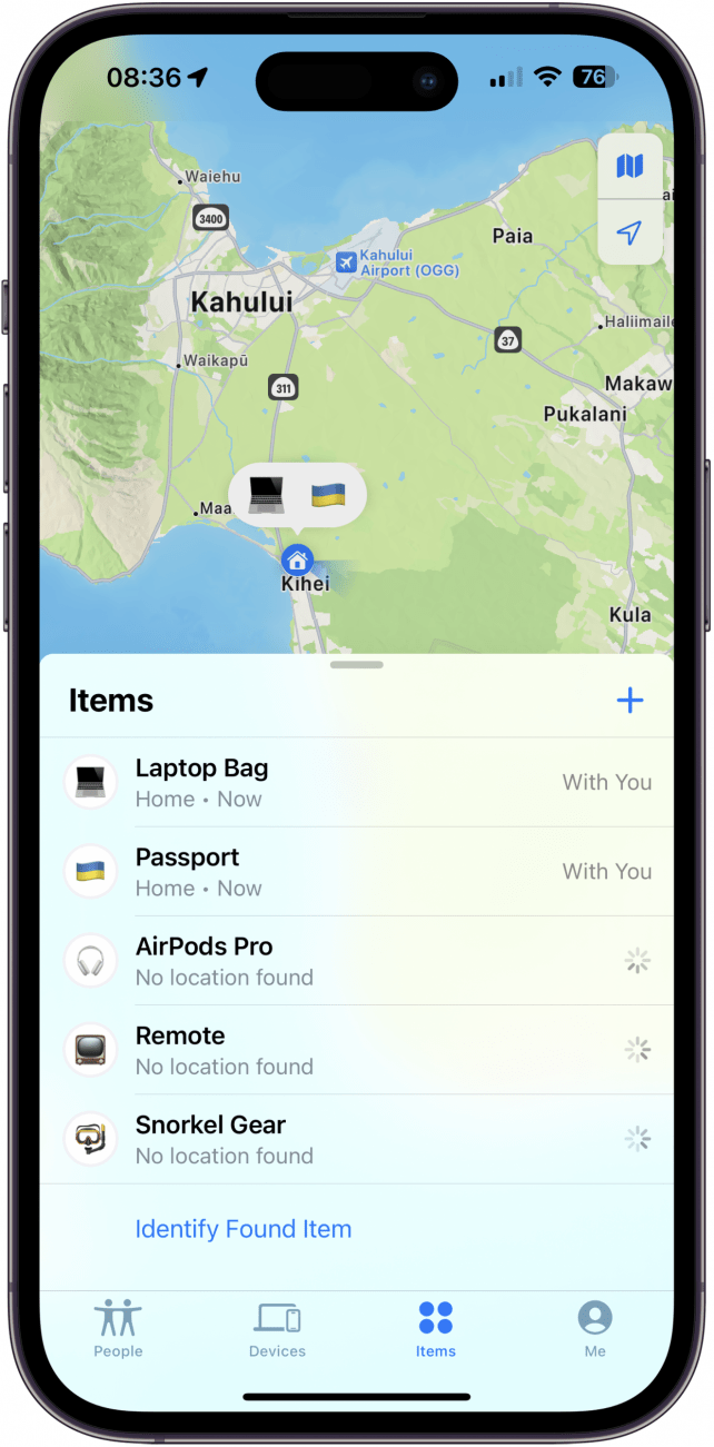 只要兩部 iPhone 透過同一個 Apple ID 連接,您就無需執行任何步驟即可將 AirTag 添加到第二部手機。 AirTag 連接到裝置後,它將自動顯示在連結到相同 Apple ID 的所有裝置的「尋找我的」應用程式的「項目」標籤中。請記住,您的 Airtag 將按照您指定的名稱列出(這通常是它所連接的項目的名稱)。