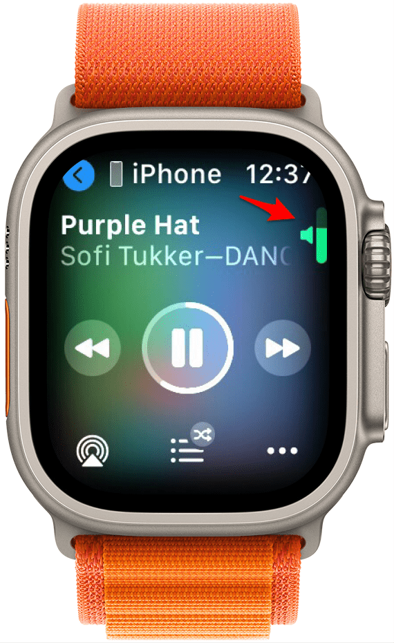 如果您正在與 Apple Watch 配對的 iPhone 上聽音樂或直接從 Apple Watch 上聽音樂,還可以在手錶上更改 AirPods 的音量。以下是如何在 Apple Watch 上調大 AirPods 的聲音: