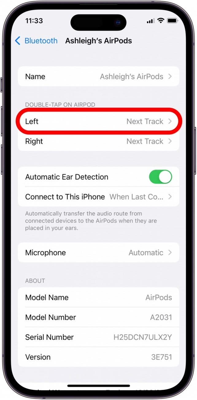 - 在下面雙擊 AirPod,點擊任一正確的或者左邊。這將決定您的哪一個 AirPods 將召喚 Siri,請考慮您非主導一側的 AirPods,以便您可以在不中斷另一項重要任務(例如寫作)的情況下完成此任務。