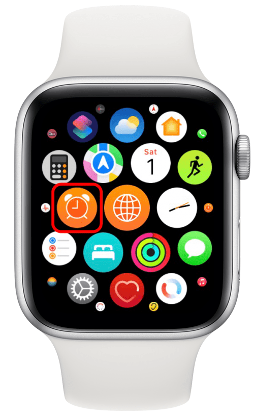 - 按 Digital Crown 上的“主頁”按鈕可查看所有應用程序,然後點擊警報。