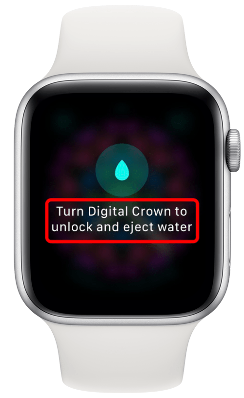 - 然後轉動轉盤 按下數碼表冠以排出水份。當水從手錶中取出時,您會聽到振動聲,並且可能會感覺到一些水。