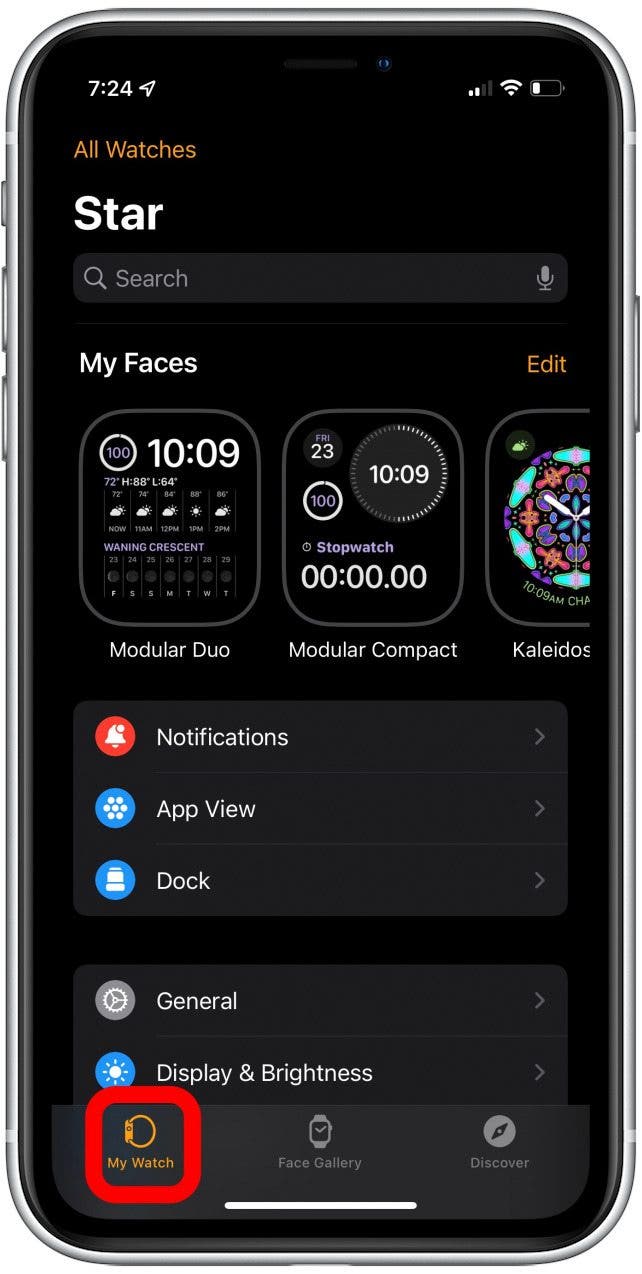 - 在您的 iPhone 上,打開蘋果手錶應用程式.