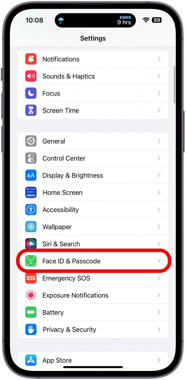 - 如果您想為所有應用程序啟用(或禁用)實時活動,請返回“設置”並點擊面部識別碼和密碼。