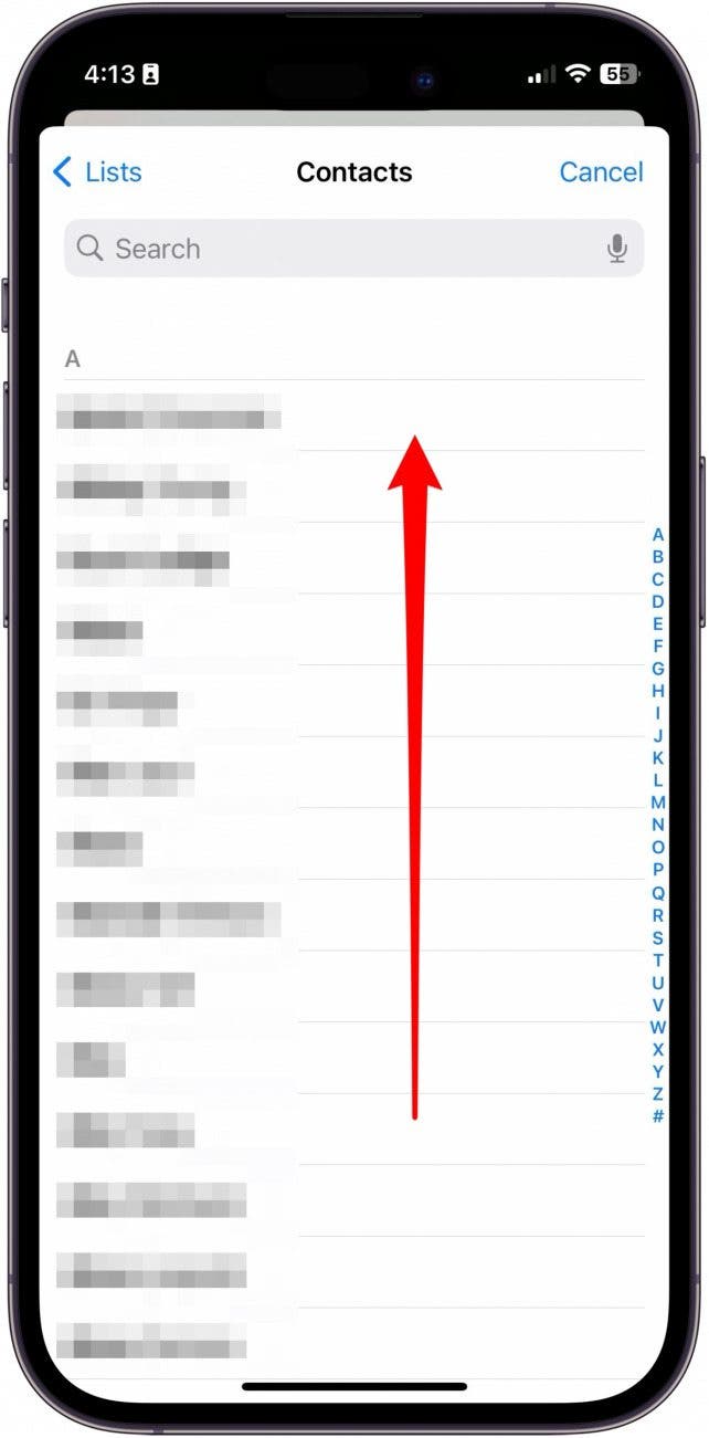 - 從這裡,您可以從聯絡人清單中選擇一個人。