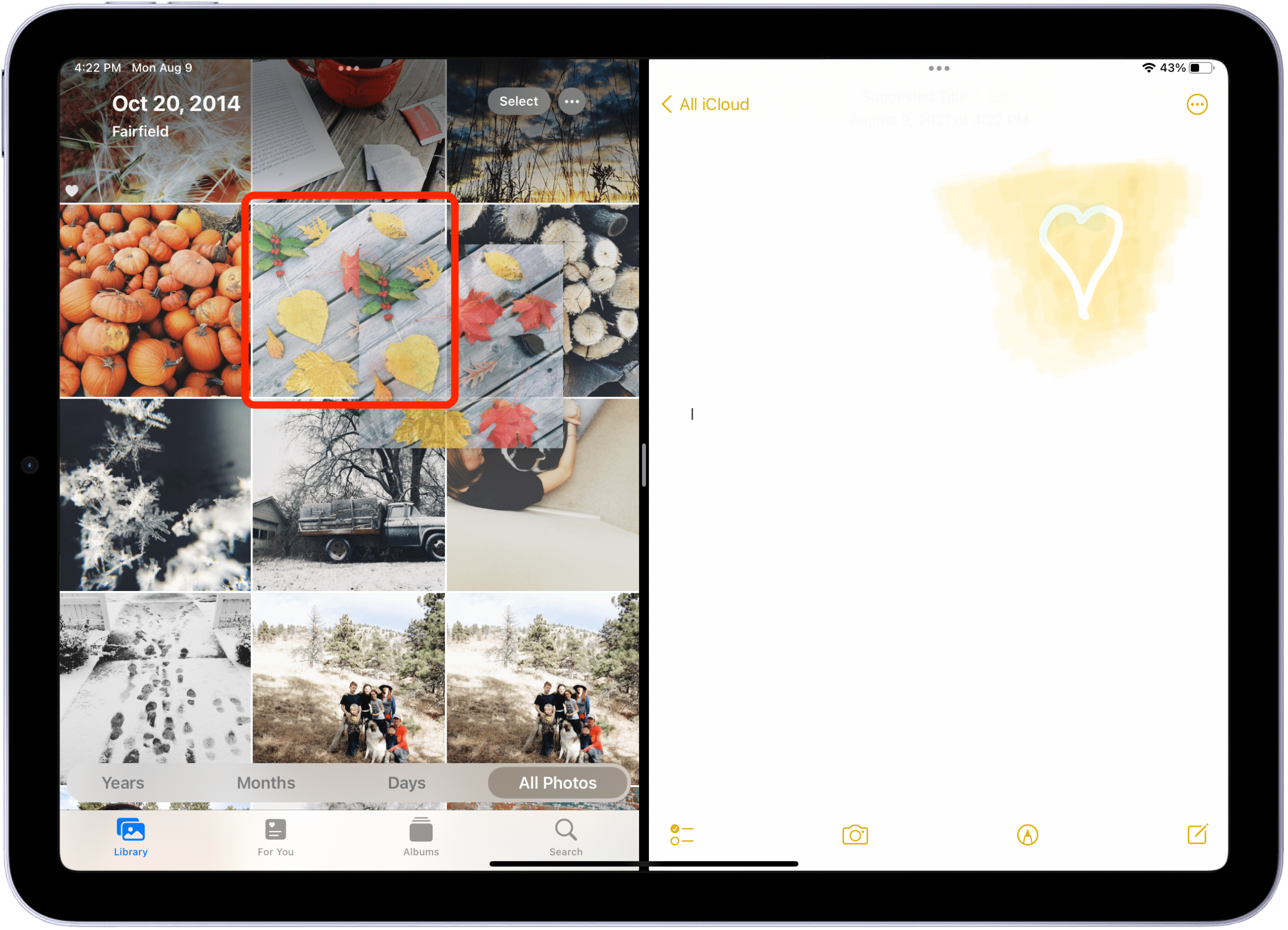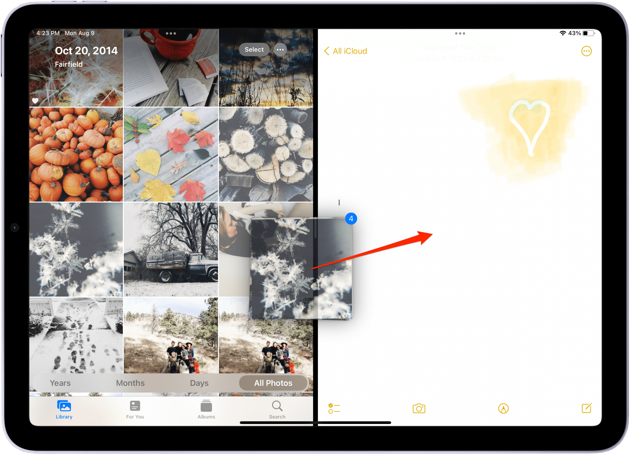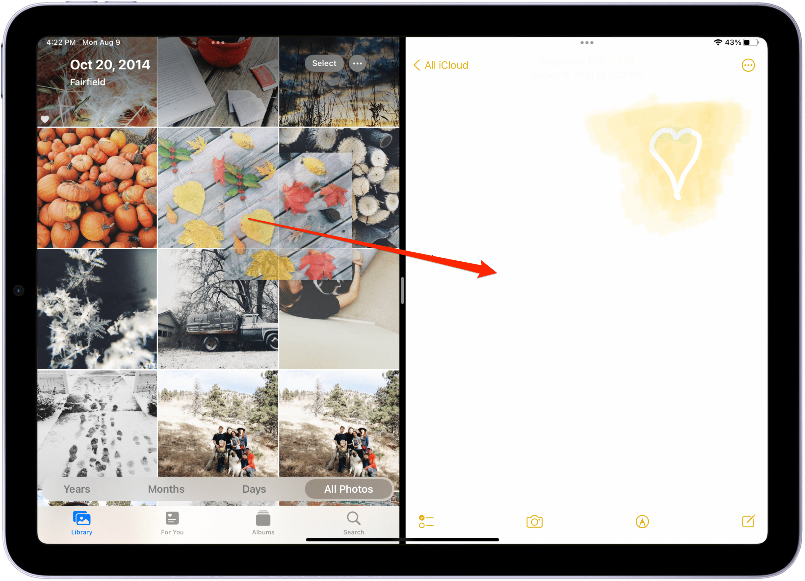 - 如果您使用分屏視圖或分屏,則可以將內容從一個應用程序拖動到另一個打開的應用程序。
