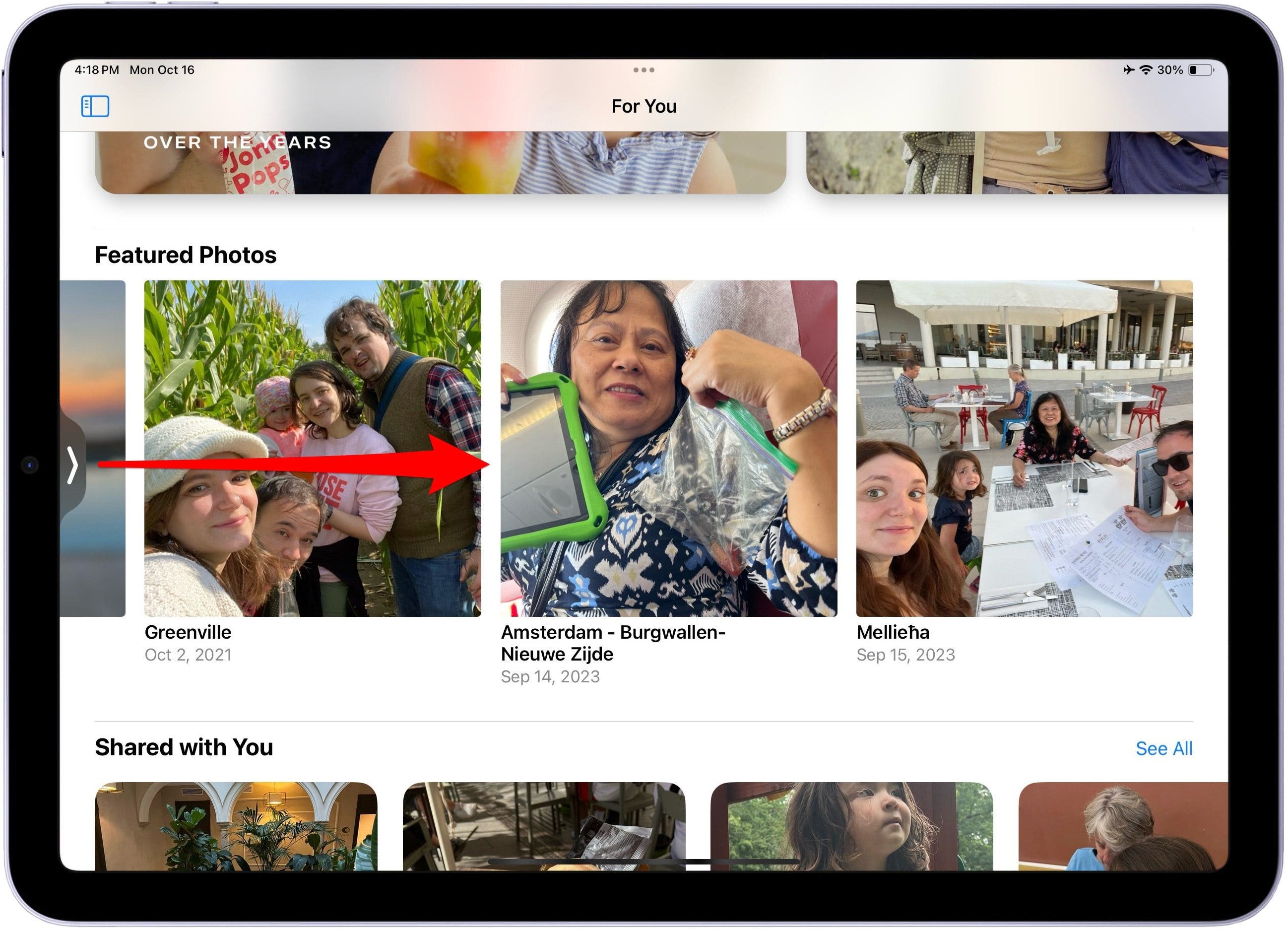 - 點擊並按住一張圖像將其彈出並將其稍微拖到一邊。繼續保持圖像。
