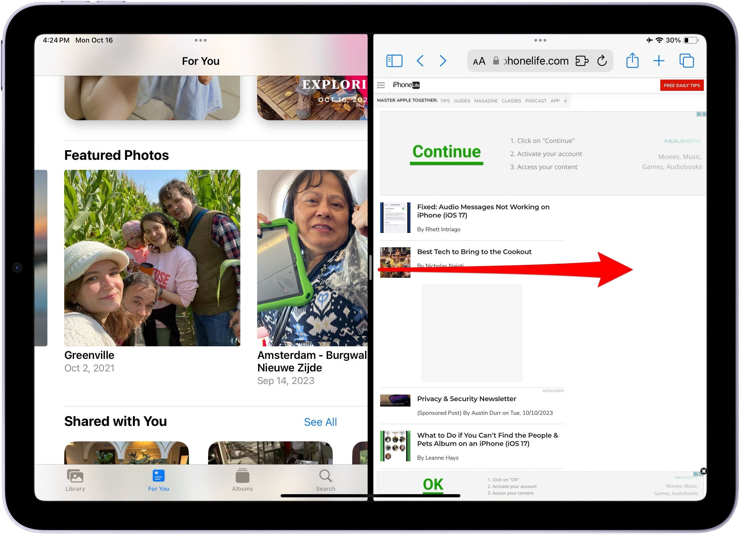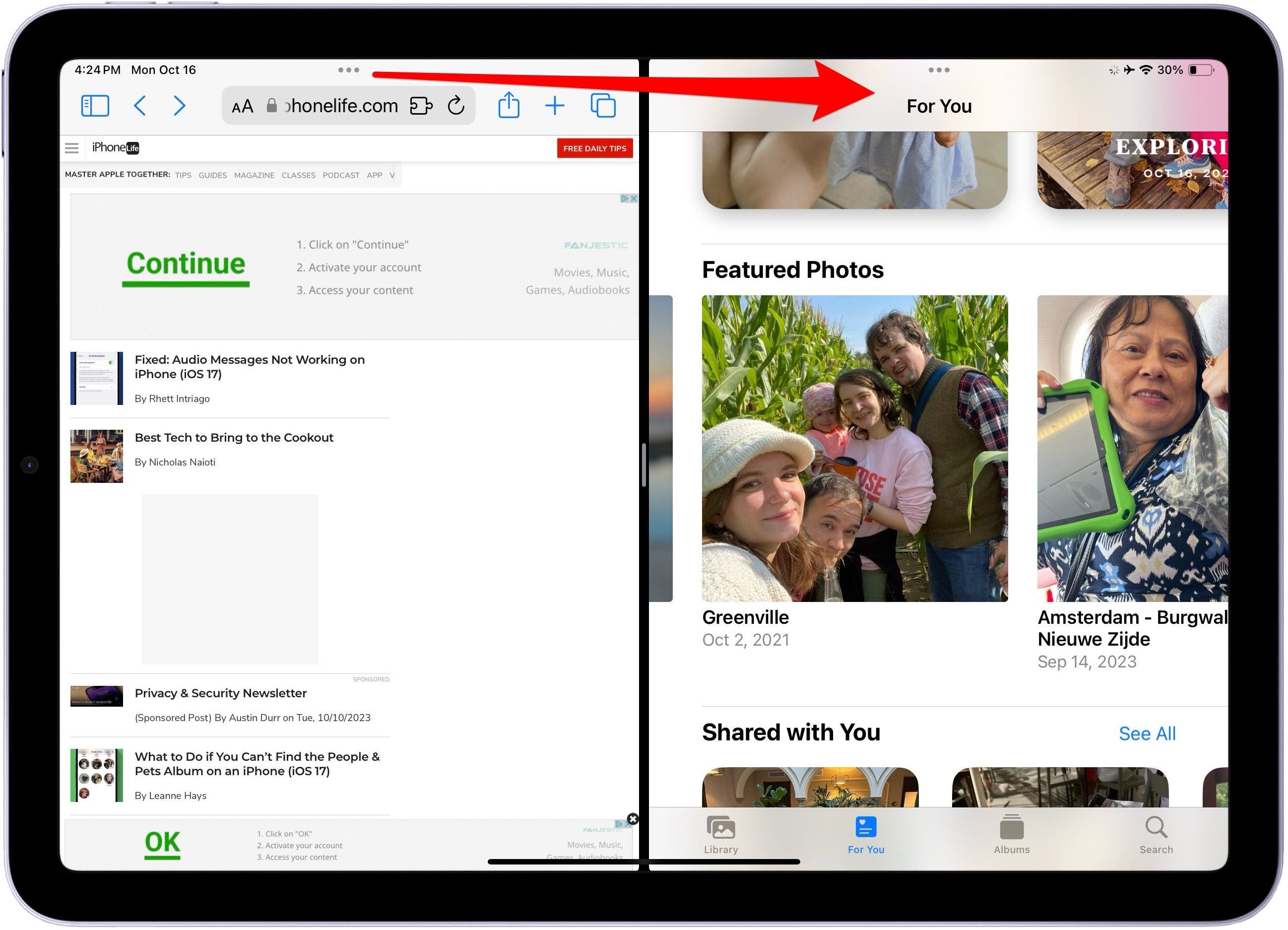 如果您正在學習如何擺脫 iPad 上的分屏,另一種方法是將應用程序分隔線拖到 iPad 屏幕的邊緣。另外,如果您喜歡使用 iPad 分屏功能進行多任務處理,您可能也有興趣學習。