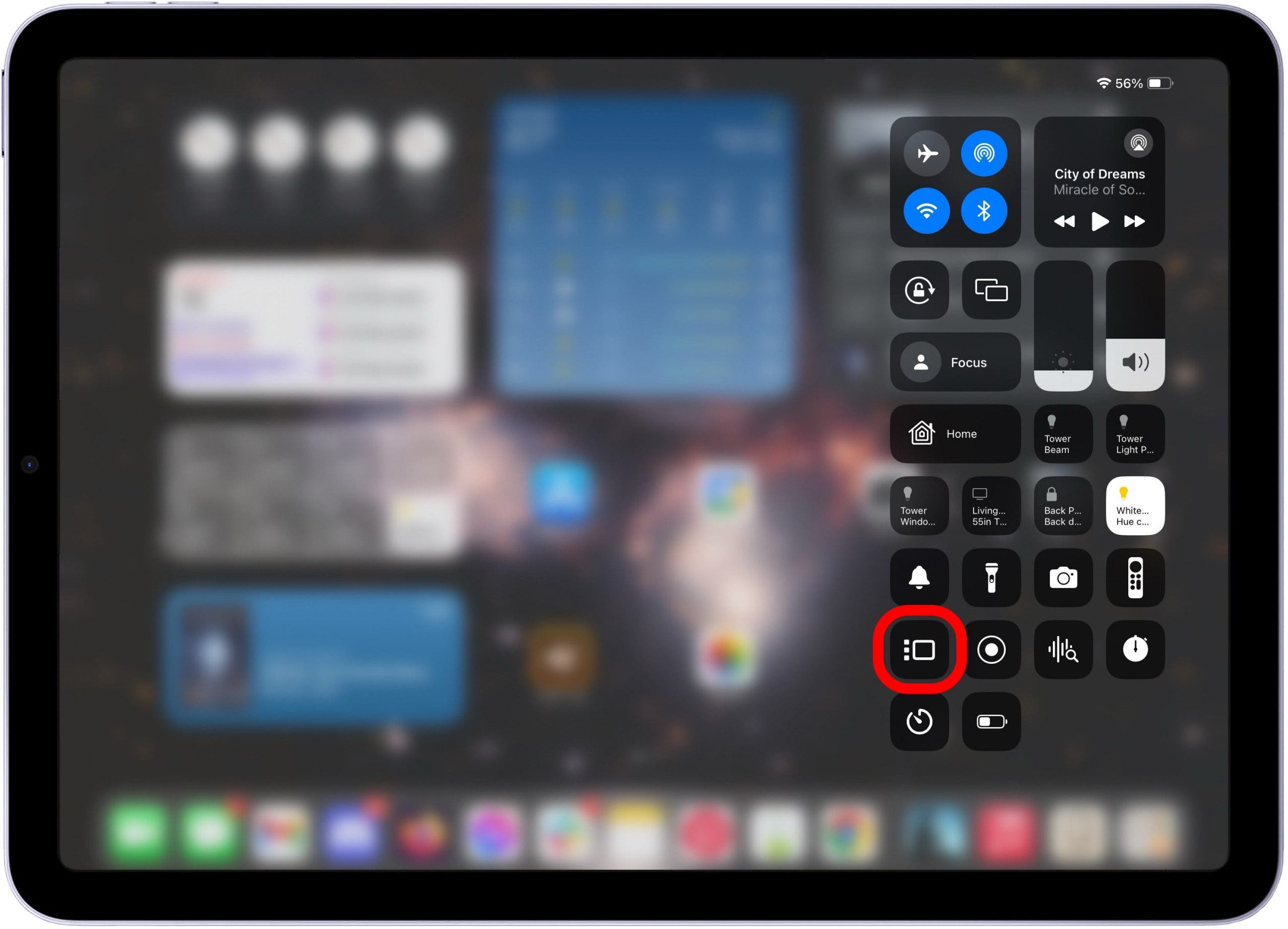- 在 iPad 上打開應用程序並點擊多任務處理圖標在窗口頂部。