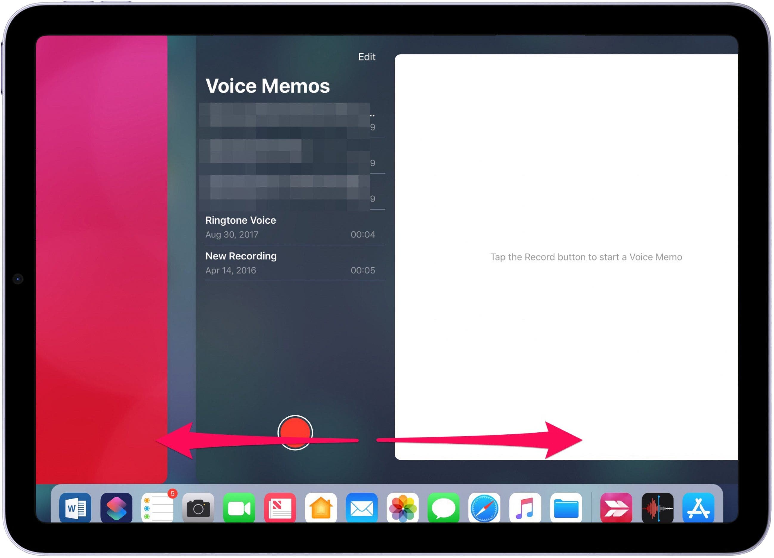 - 打開 Slide Over 的另一種方法是打開主應用程序,然後將第二個應用程序從 Dock 拖到屏幕上。