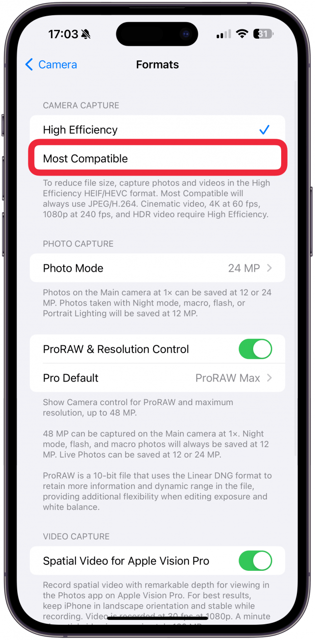 如果您再也不想擔心照片轉換問題,可以更改相機應用中的設置。雖然這會使您的照片佔用更多存儲空間,但如果您經常需要使用 JPG 而不是 HEIC 照片,那麼這將非常有用。
