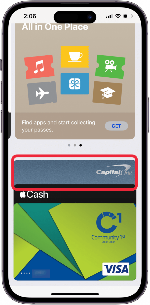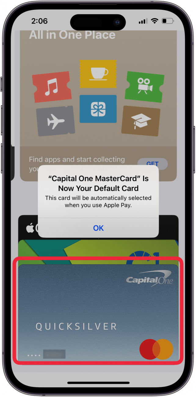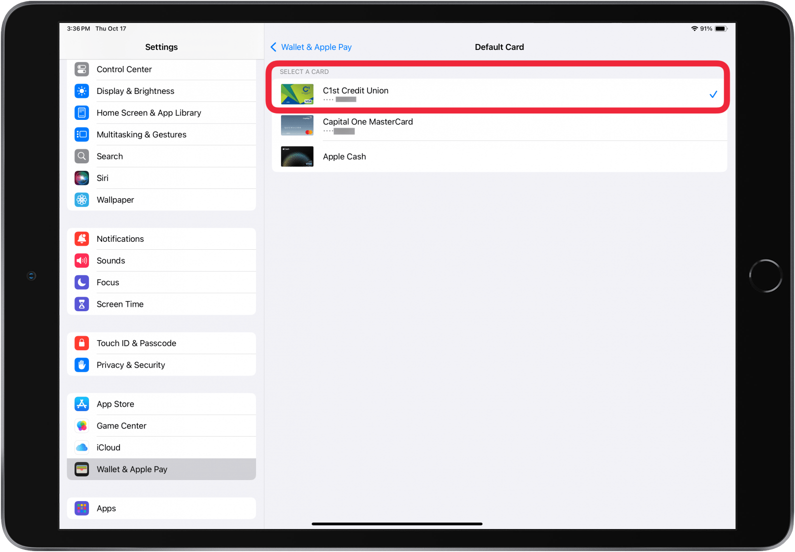 - 點擊您想要設置為默認卡的卡;您會看到您選擇的卡旁邊有一個複選標記。