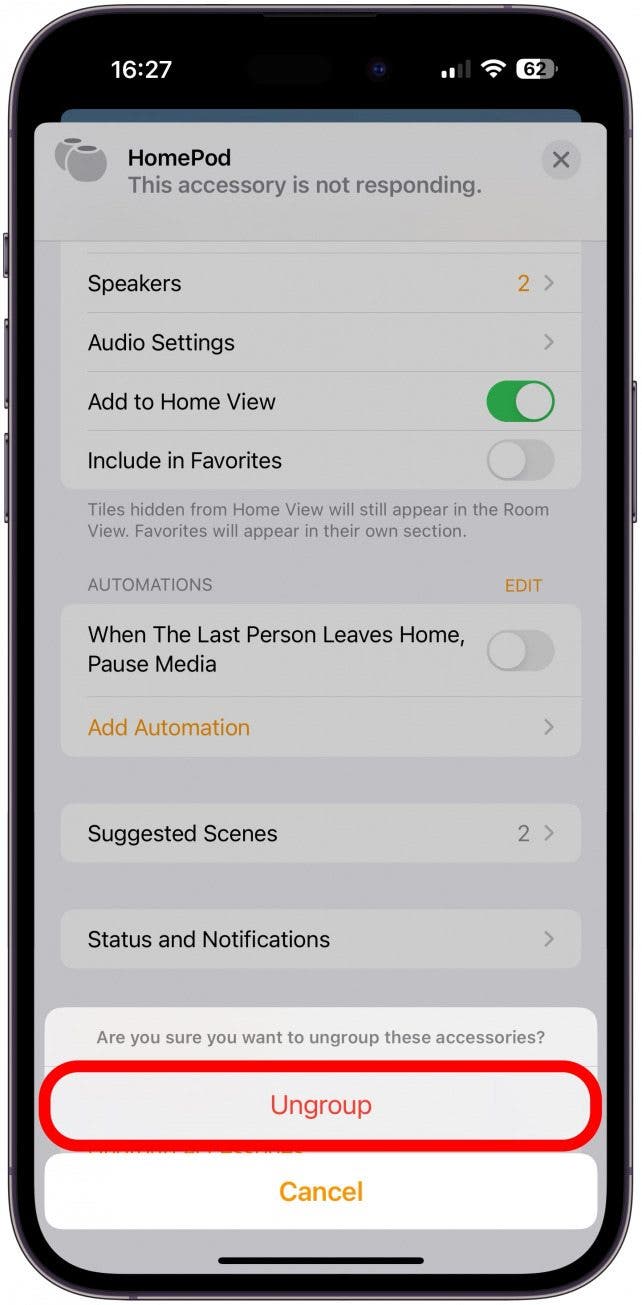 - 打開家庭應用程序並長按您想要取消配對的立體聲配對。