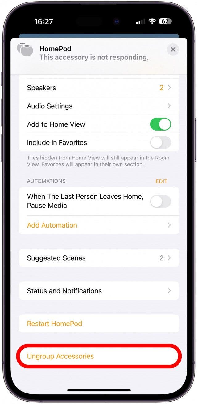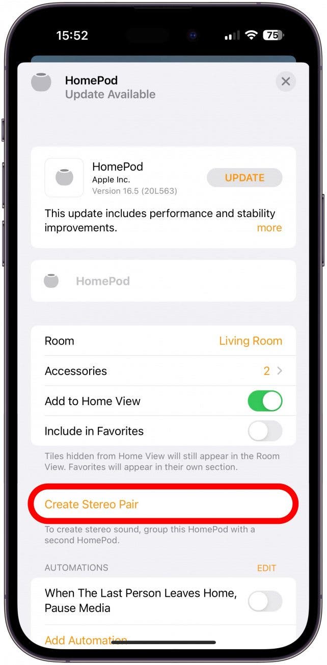 HomePod 將取消配對,並在您的家庭應用程序中顯示為兩個單獨的 HomePod。