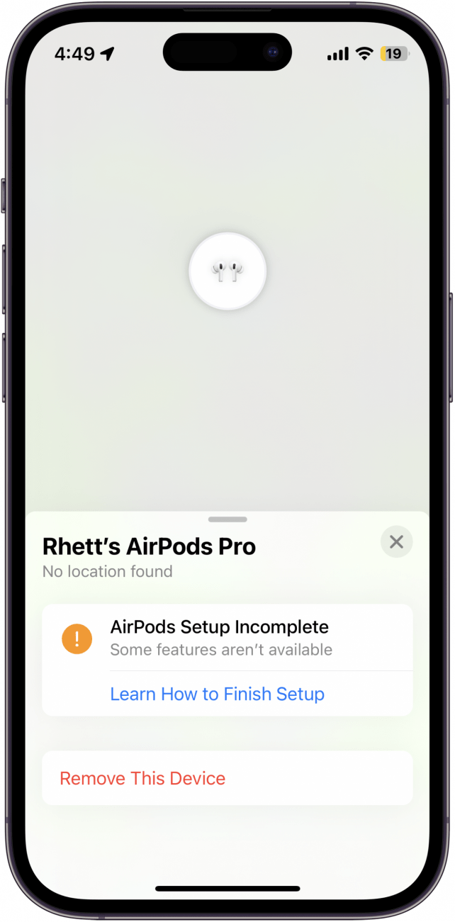 如果您在嘗試在「尋找」中查看 AirPods 的位置時看到「AirPods 設定不完整」錯誤訊息,這僅表示您需要將 AirPods 重新連接到 iPhone。幸運的是,這是一個非常簡單的過程: