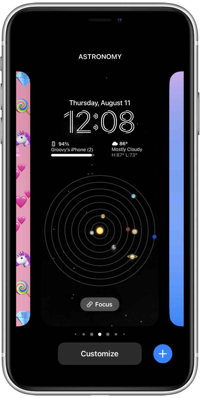 - 若要編輯鎖定螢幕,請長按鎖定螢幕,直到進入「編輯」模式。