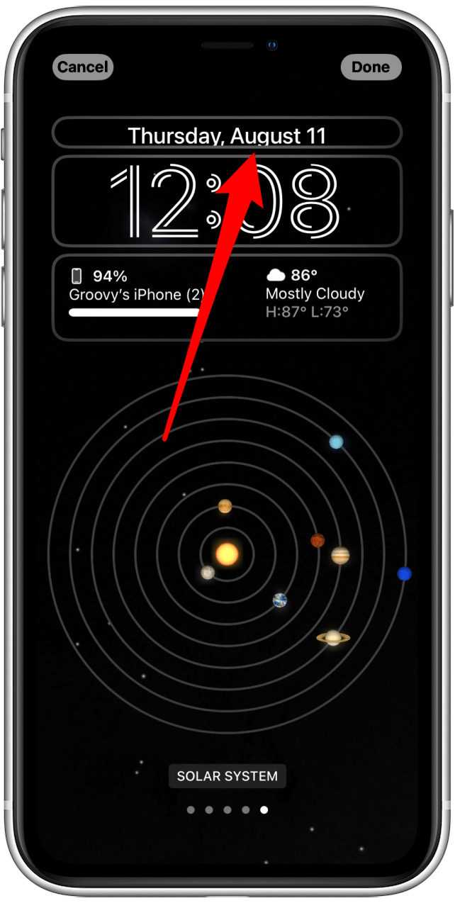 - 點擊可以新增小部件的兩個區域之一。我將首先點擊日期。