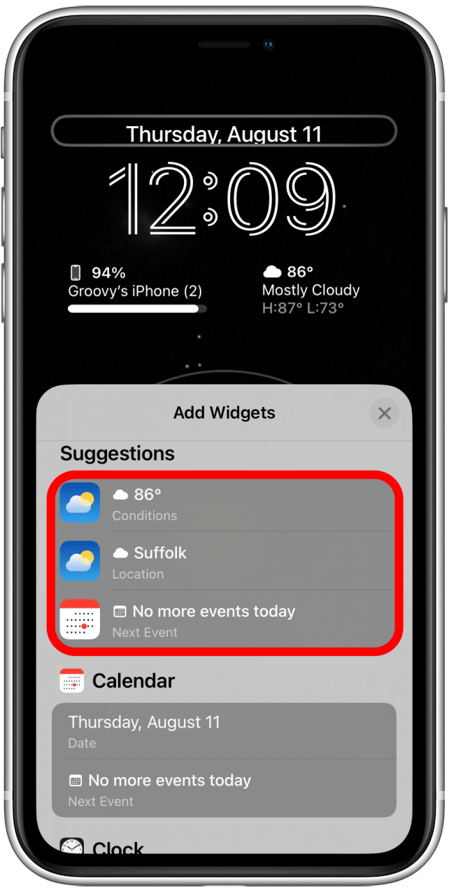 一旦您完成此操作,您就可以使用此功能。在 iOS 16 中,鎖定畫面上有兩個位置可以新增小工具。如果您不熟悉小部件,請考慮。但是,鎖定螢幕小工具與其他小工具略有不同。請務必註冊我們的了解更多 iOS 16 技巧。添加小部件的方法如下: