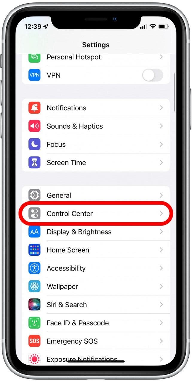 - 打開控制中心從螢幕右上角向下滑動。對於帶有“主頁”按鈕的 iPhone,請從螢幕底部向上滑動。