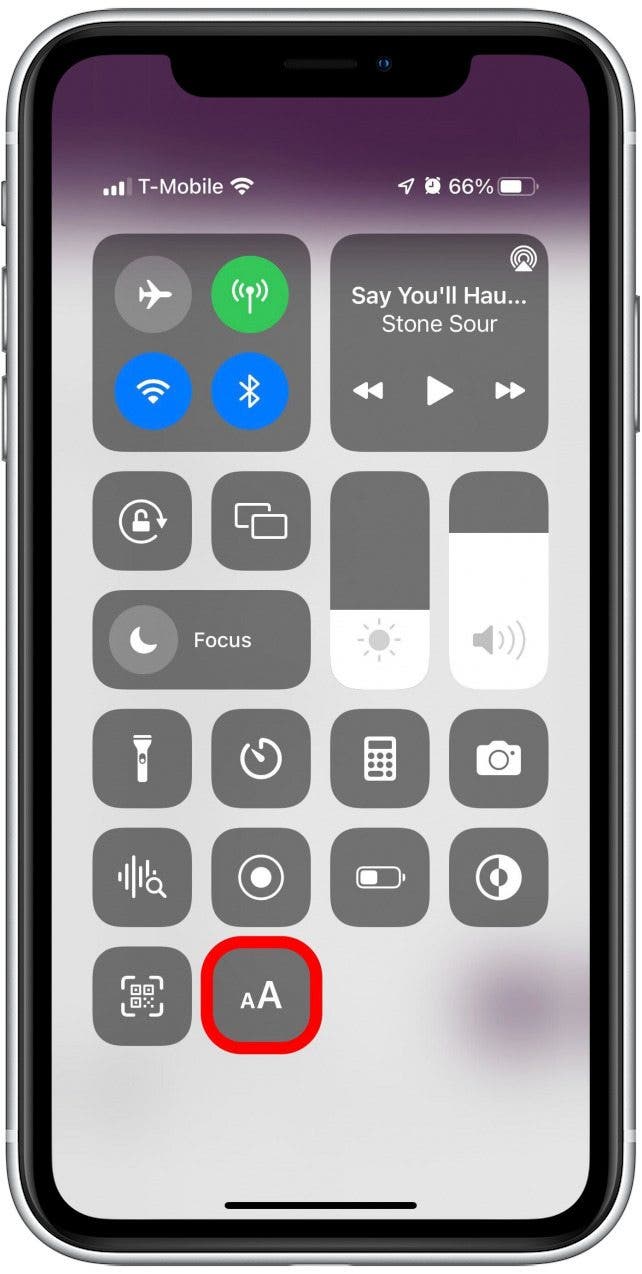 - 現在,當您開啟 iPhone 上的控制中心時,即可使用文字大小。