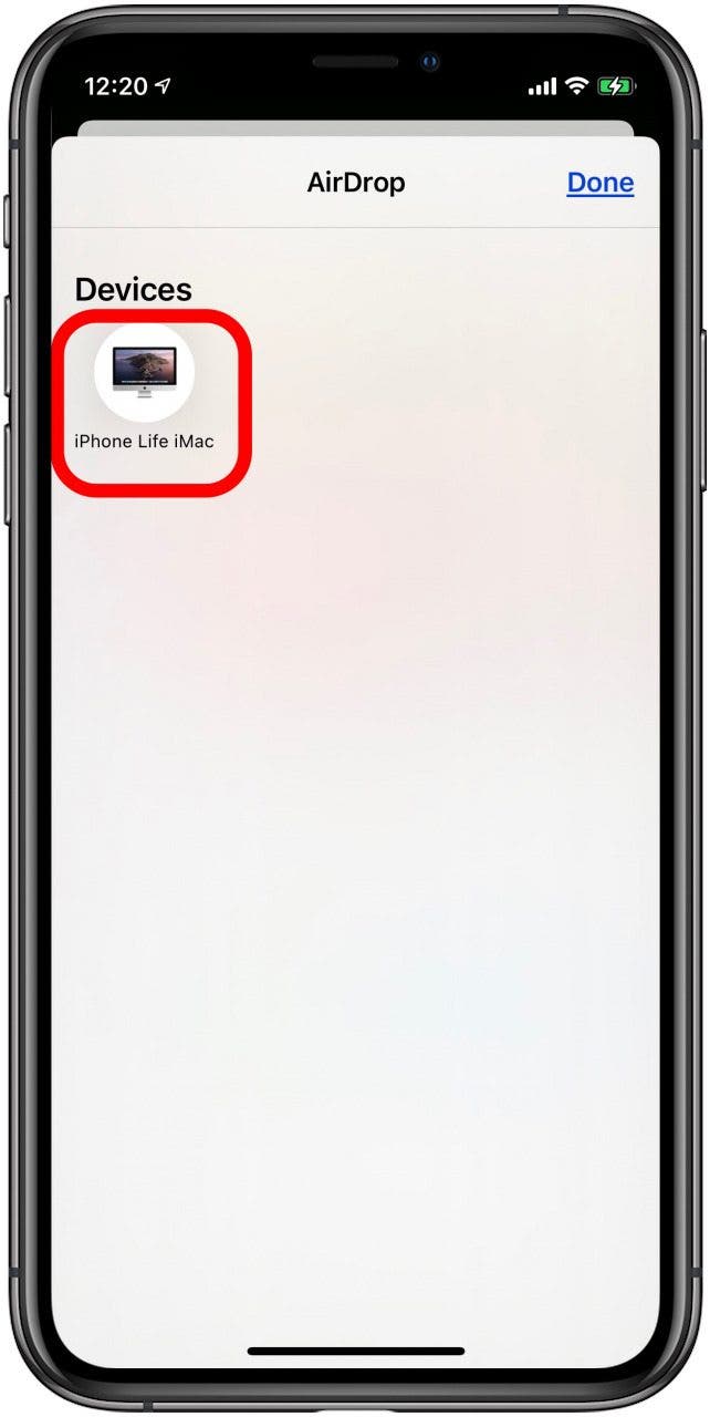- 輕敲空投。一旦您通過 AirDrop 方式連接到這台計算機,您的 iPhone 可能會提供點擊帶有 AirDrop 圖標的計算機圖標的選項,這樣您以後就可以跳過第四步。