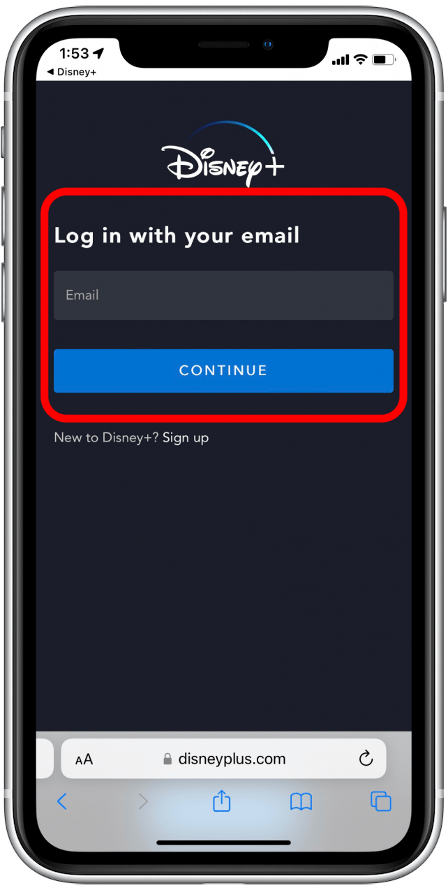 根據您的迪士尼+帳戶的具體情況,此選項可能會有所不同,但應該會將您重定向到您的。 - 如有必要,請在瀏覽器中登錄您的 Disney Plus 帳戶。