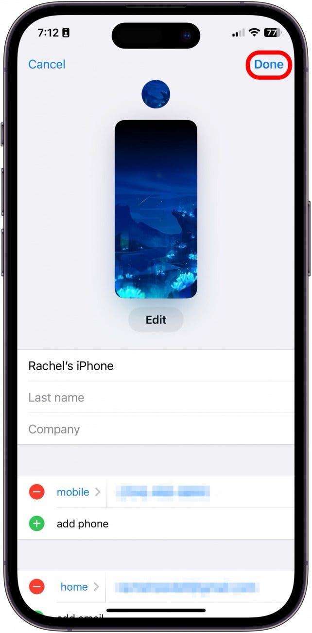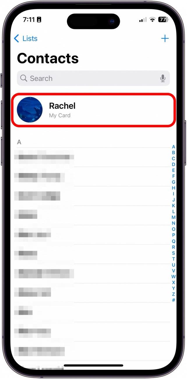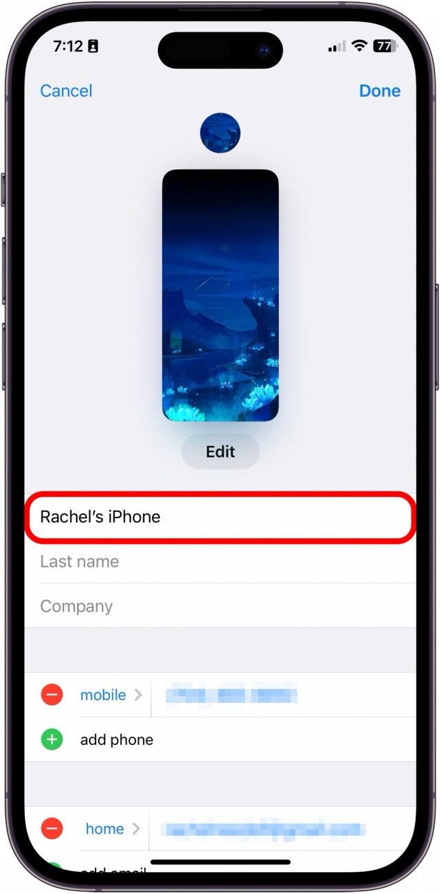 - 要在 iPhone 上更改您的 AirDrop 名稱,請前往“通訊錄”並將新的 AirDrop 名稱添加到您的聯繫人名片中。