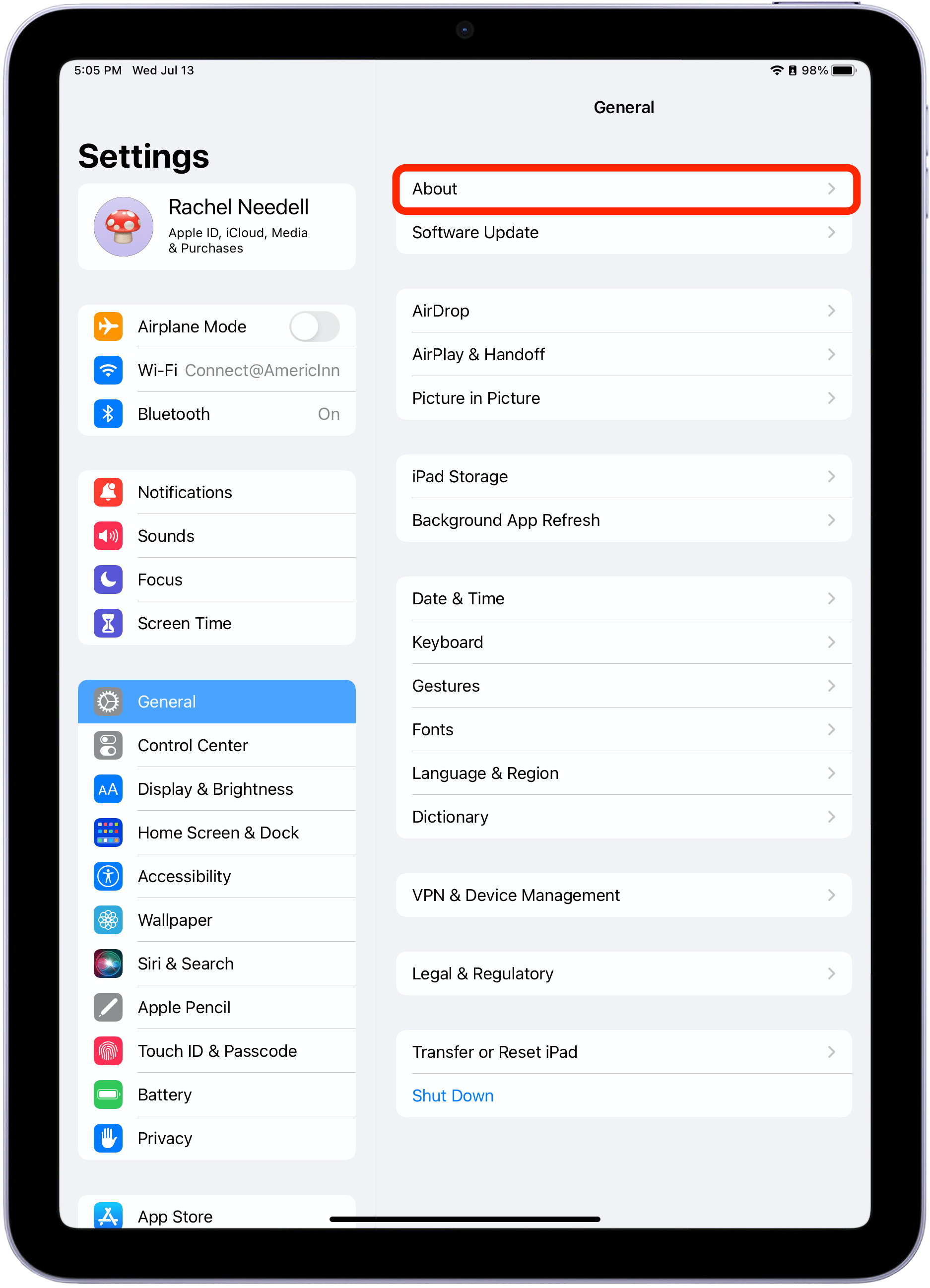 如果您想知道如何更改 iPad 上的 AirDrop 名稱,只需更改 iPad 設備名稱即可。請記住,更改 iPad 設備名稱也會更改 Wi-Fi 網絡、“查找”中以及將 iPad 連接到電腦時顯示的名稱。以下是在 iPad 上更改 AirDrop 名稱的方法: