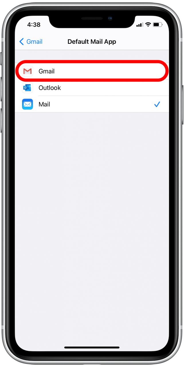 - 向下滾動到您選擇的郵件應用程序並點擊它。我選擇的應用程序是 Gmail。