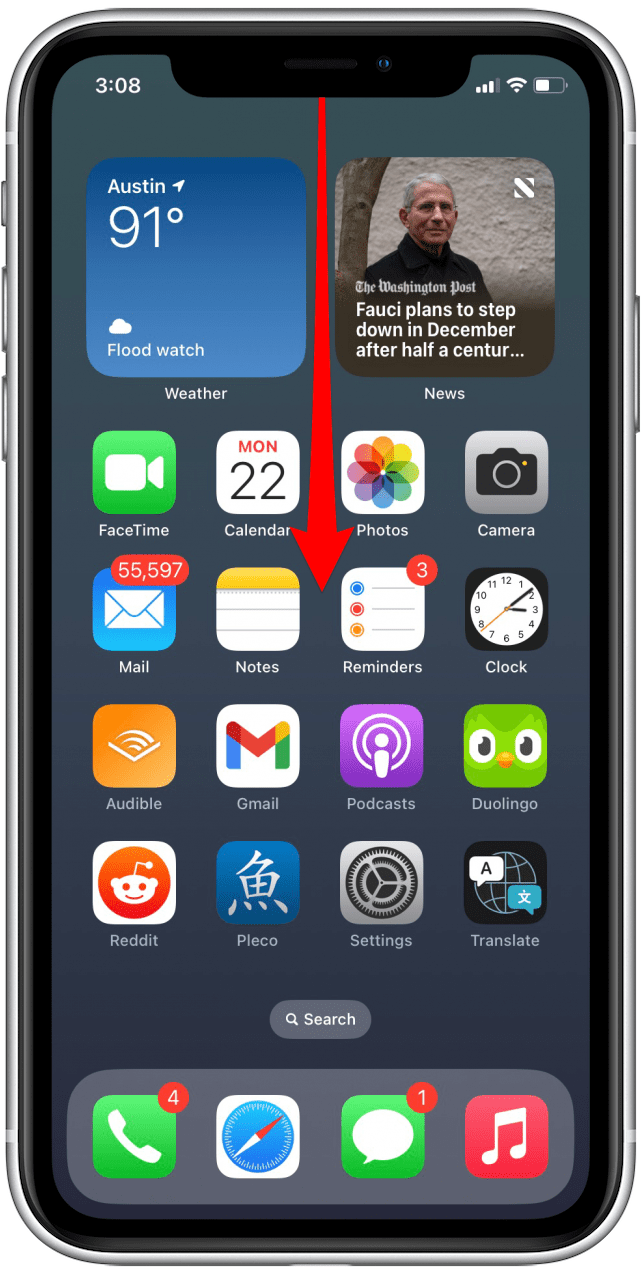 - 屏幕解鎖後,從主屏幕中央頂部向下滑動以打開鎖定屏幕。