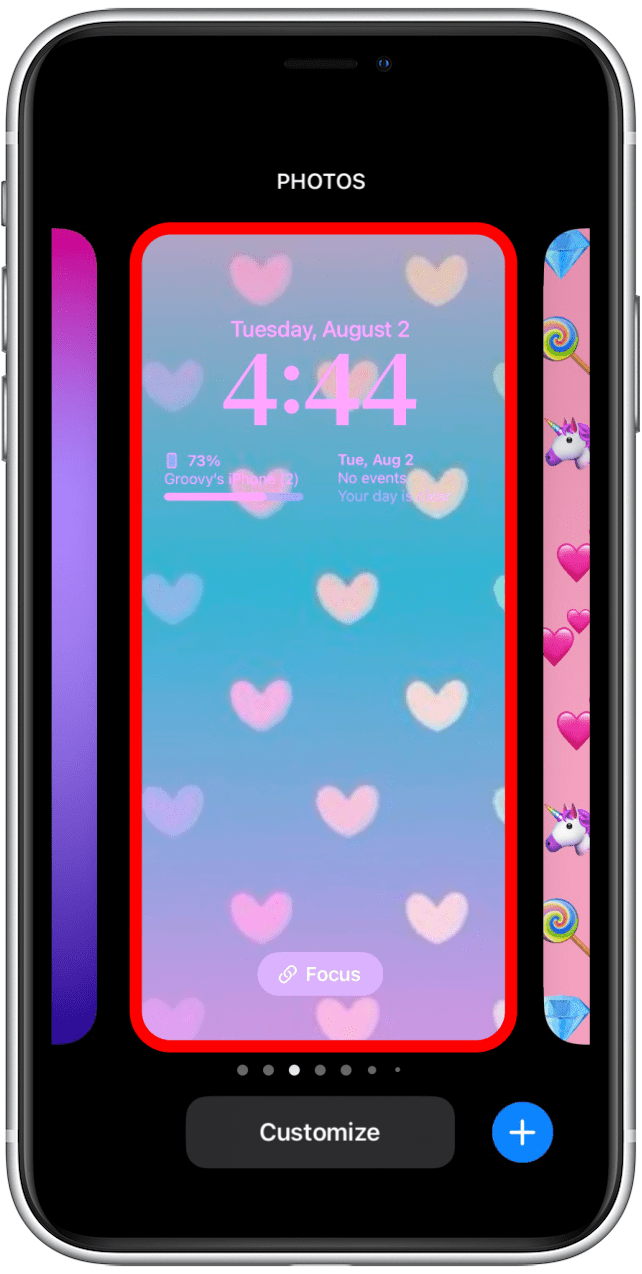 - 長按鎖定屏幕,直到看到定制和重點按鈕。