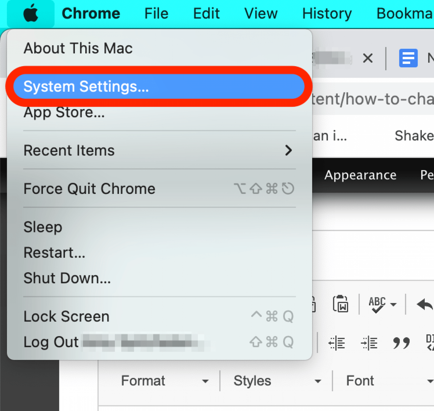 - 要更改 Mac 的名稱,請單擊蘋果菜單並選擇系統設置。