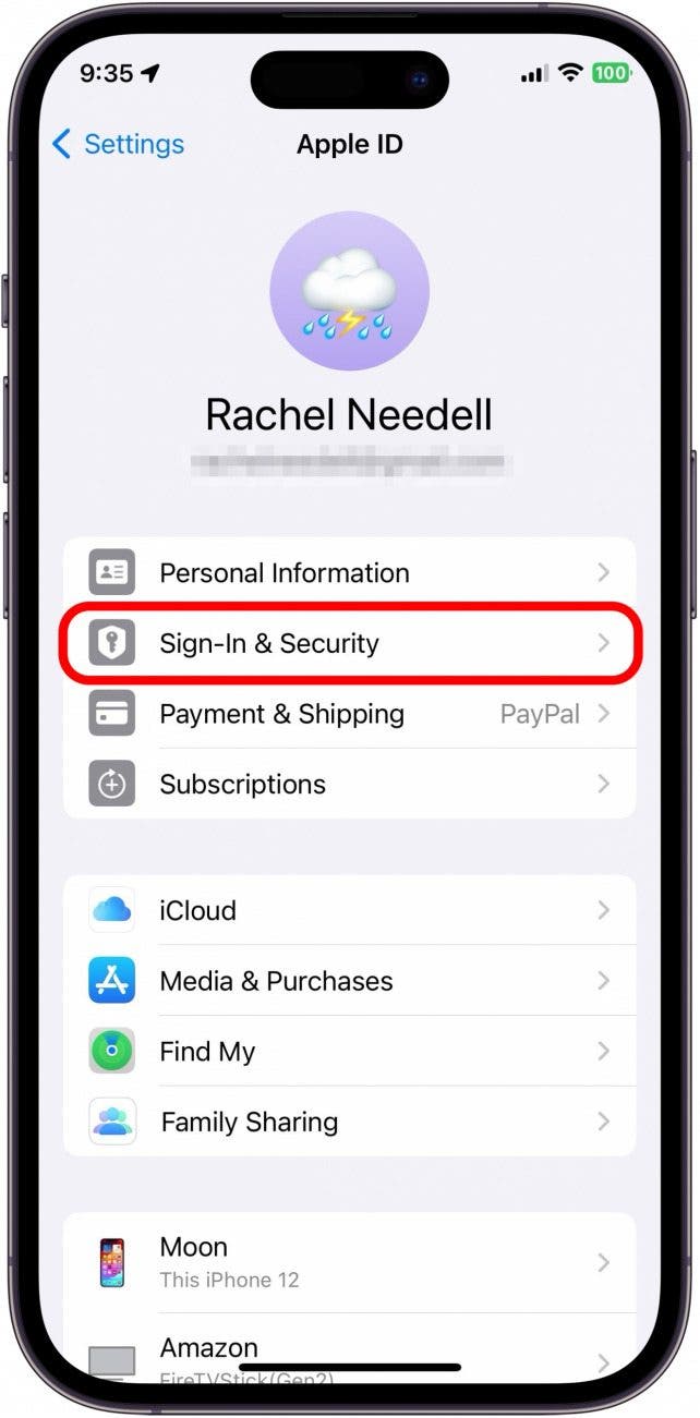 - 要從 iPhone 更改您的 Apple ID 密碼,請打開“設置”應用,點擊您的個人資料圖標,然後選擇“登錄和安全”。