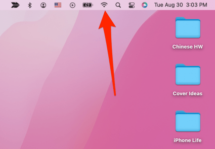 - 在 Mac 上,單擊屏幕右上角的 Wi-Fi 圖標以打開 Wi-Fi 下拉菜單。