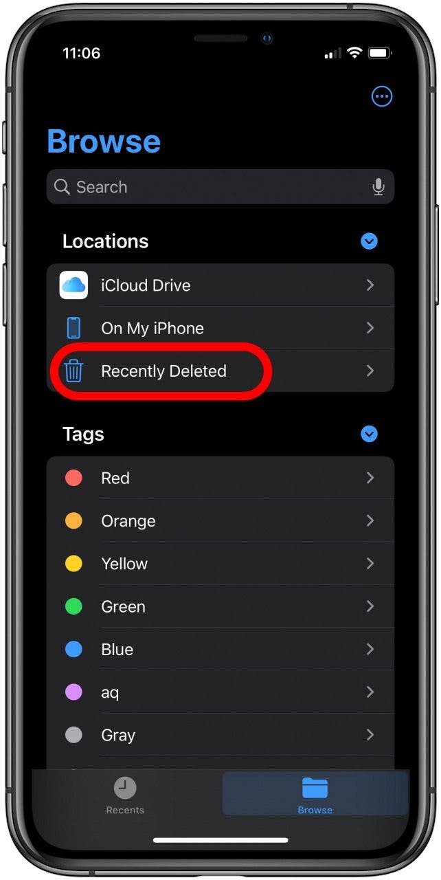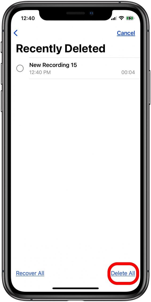 - 現在,返回主語音備忘錄屏幕並點擊最近刪除。