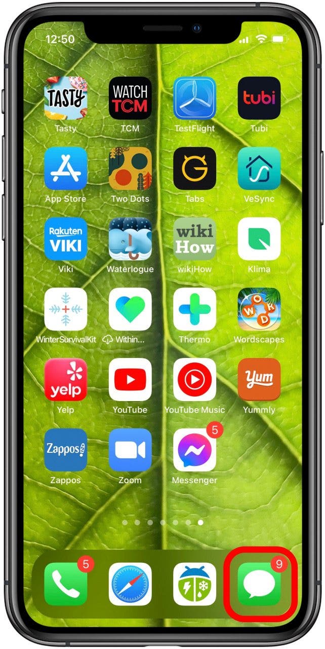 - 打開消息應用程序,然後點擊包含附件的文本線索。