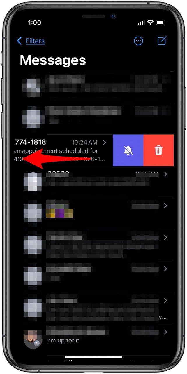 - 您還可以向左滑動要刪除的文本線索,然後點擊垃圾桶圖標。