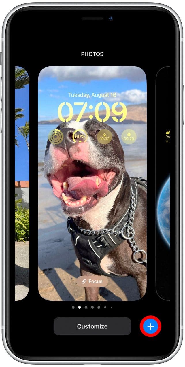 - 點擊並按住您的鎖屏直到您看到“自定義”和“聚焦”按鈕。如果您很難讓按鈕出現,請查看下面的替代方法。
