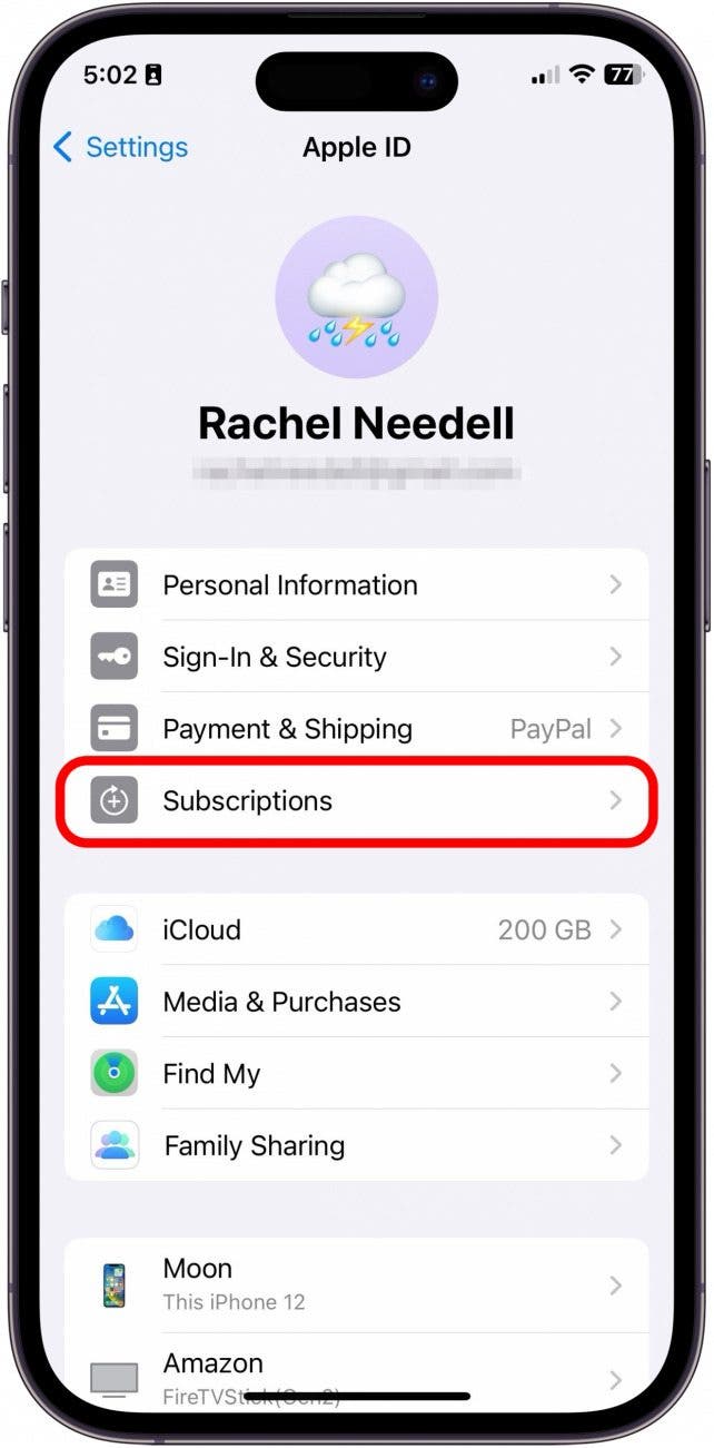- 如果您想查看非活動訂閱,請打開“設置”,點擊您的姓名,然後點擊“訂閱”。
