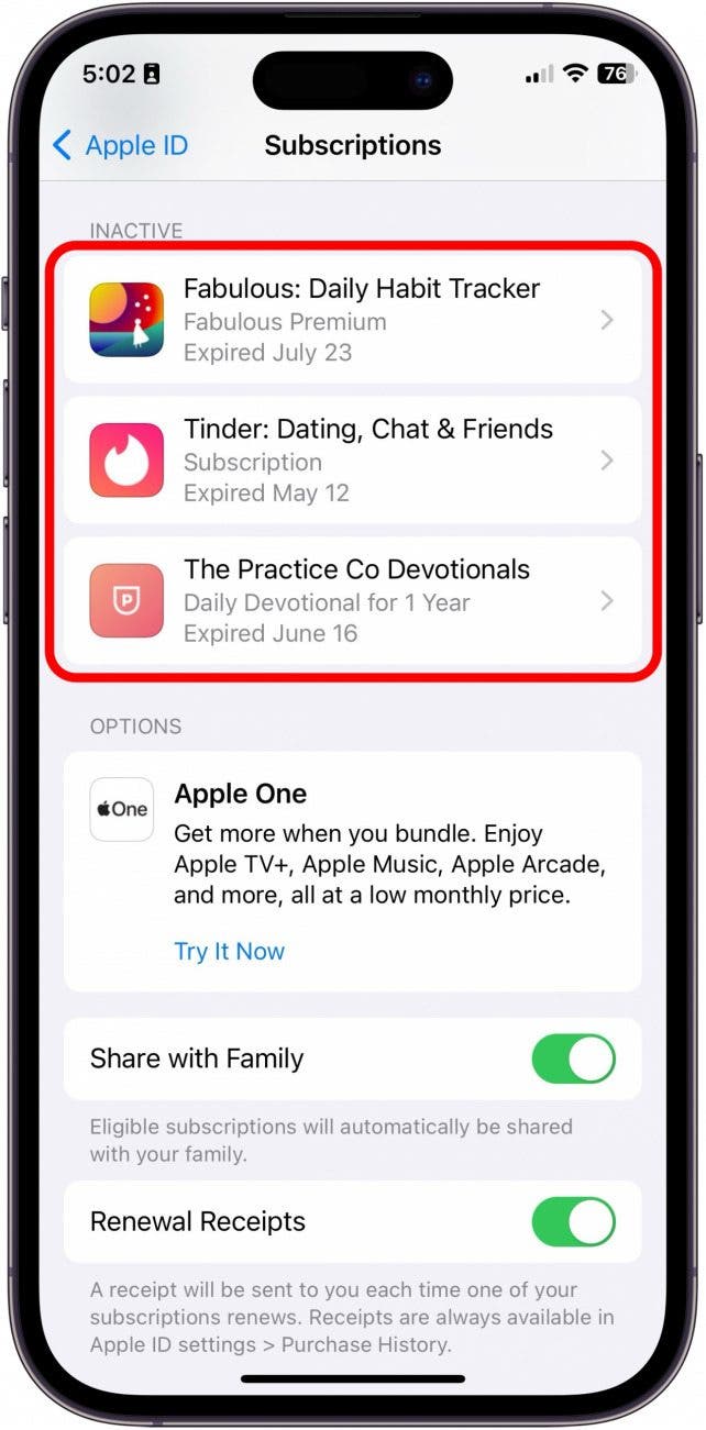 不幸的是,您無法隱藏 iPhone 上不活動的訂閱。雖然無法清除不活躍的訂閱,但它們將在取消一年後自動消失。要了解有關在 iPhone 上使用訂閱的更多信息,請查看我們的通訊。現在,以下是查看您最近過期的訂閱的方法:
