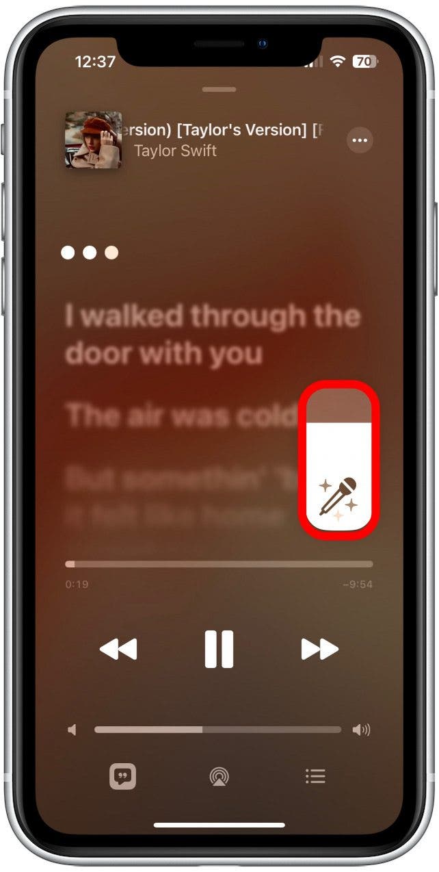 - 這將顯示一個音量滑塊,您可以上下拖動來調整音量並隨著歌詞的節拍一起唱歌。