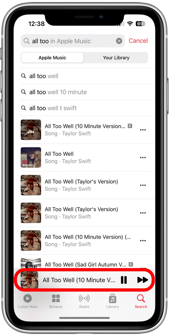 - 在屏幕底部,點擊正在播放欄。