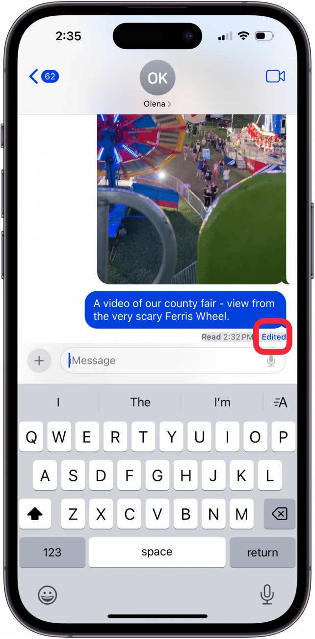 - 輕敲已編輯查看原始消息和您所做的編輯。
