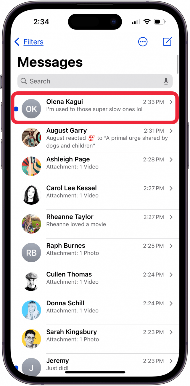 - 點擊它即可打開包含您要編輯的 iMessage 信息的文本線程。