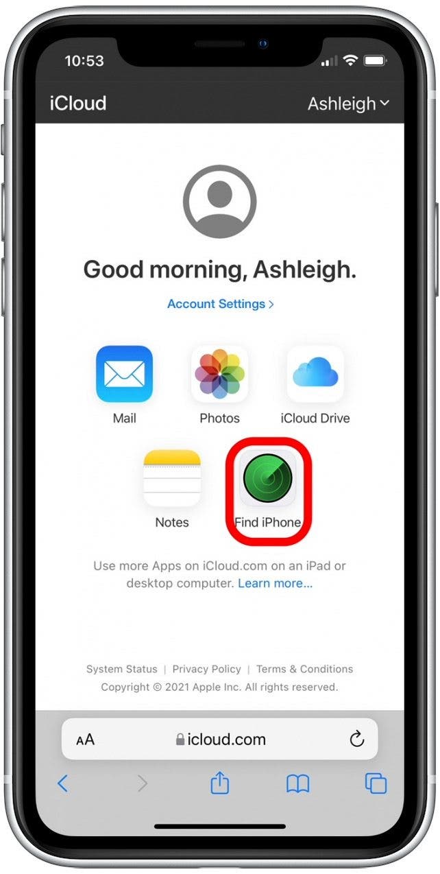 - 您還可以登錄iCloud.com使用您的 Apple ID 並輕點查找iPhone。