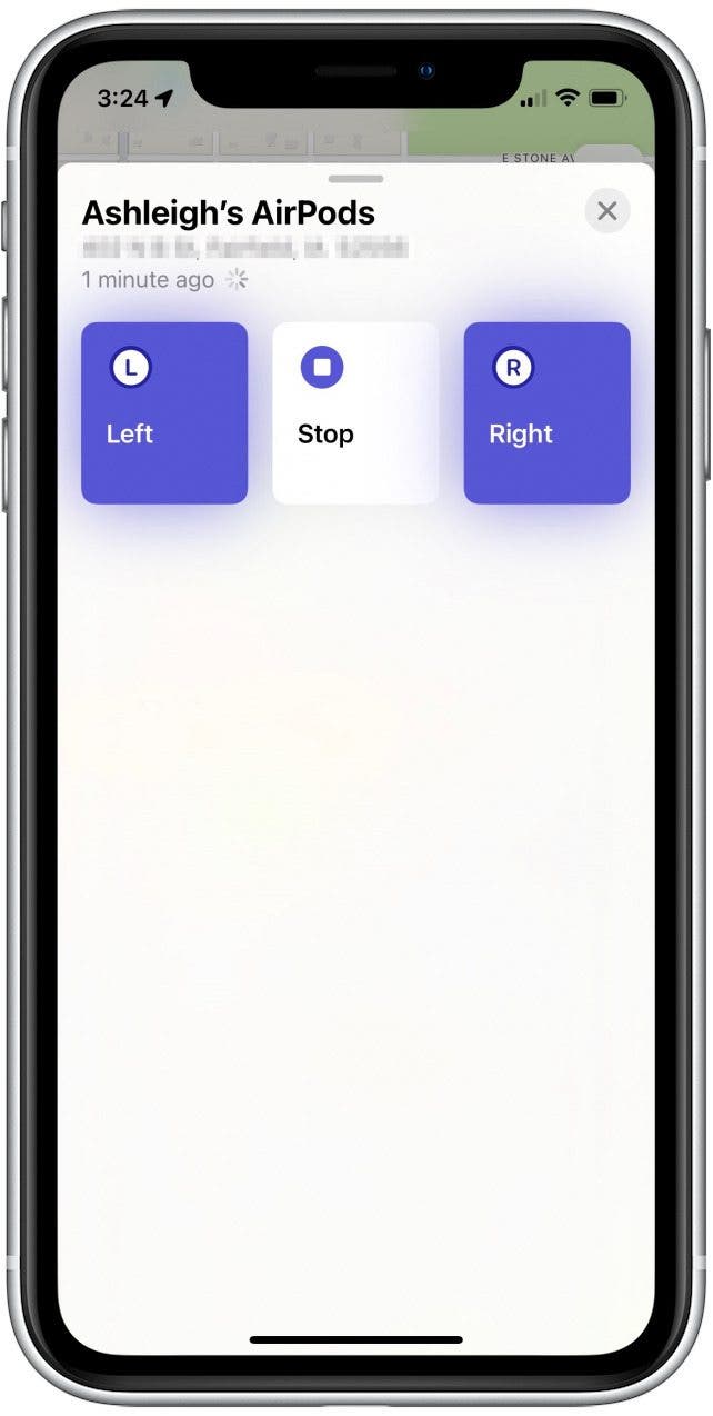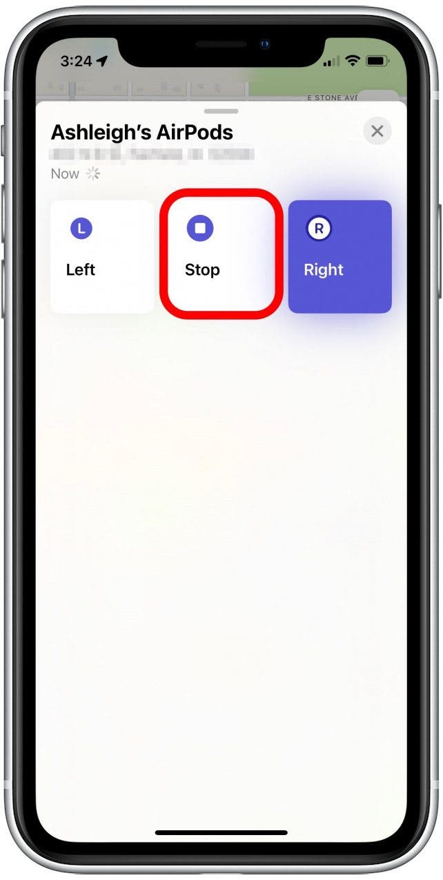- 當您找到丟失的 AirPod 時,輕點停止停止對耳塞或耳機進行 ping 操作。