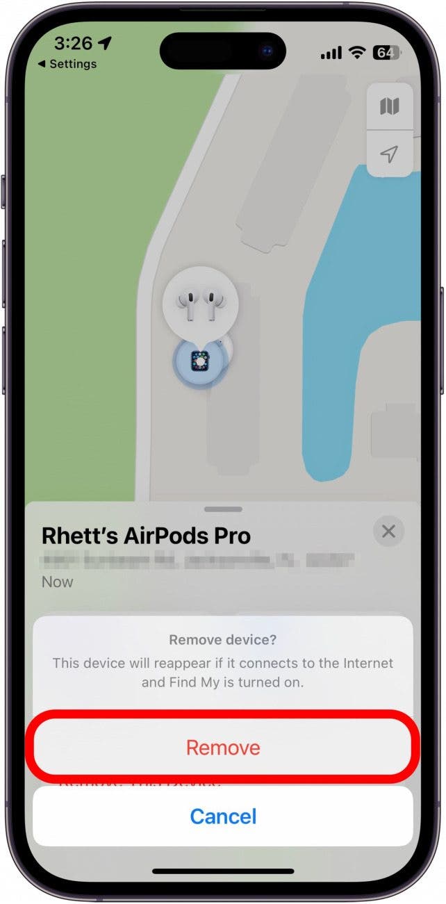 - 等待幾秒鐘,您的 AirPods 就會從“查找”中移除。