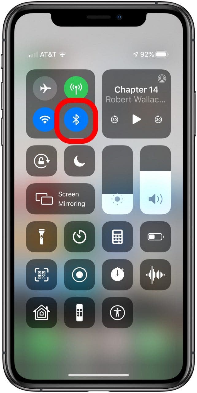 - 確保藍牙已開啟:開啟控制中心並檢查以確保藍牙圖示突出顯示(請參閱上文)。